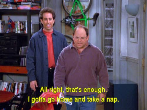 George tells Jerry he’s had a long day. It’s enough, he’s gotta go home and take a nap.