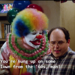 Kramer’s girlfriend makes these horrid shirts. They get donated to some homeless people who then wear them out. Can you spare a little change for an old buccaneer?