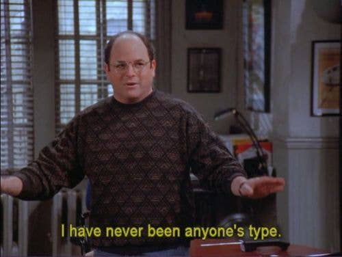 George argues that he’s never been anyone’s type! Short, stocky, balding.