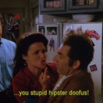 George is trying to hide from his girlfriend until the big party. He looks at Jerry and says, “If she can’t find me, she can’t break up with me“.