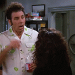 I'm out! by Kramer Kramer was not master of his domain. He comes back, ashamed, into Jerry’s apartment, throws down money and shouts “I’m out.”.